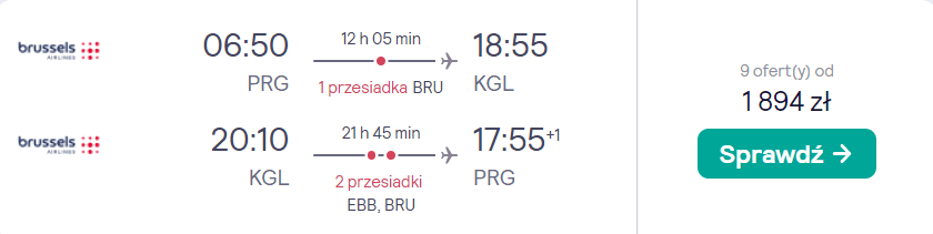 Podróż do Rwandy rozpoczniesz i zakończysz na praskim lotnisku im. Václava Havla. W obie strony polecisz na pokładach samolotów linii Brussels Airlines z wygodnymi przesiadkami w Brukseli. Bez dodatkowych kosztów zabrać ze sobą możesz bagaże podręczny oraz przedmiot osobisty (mały plecak lub damską torebkę).