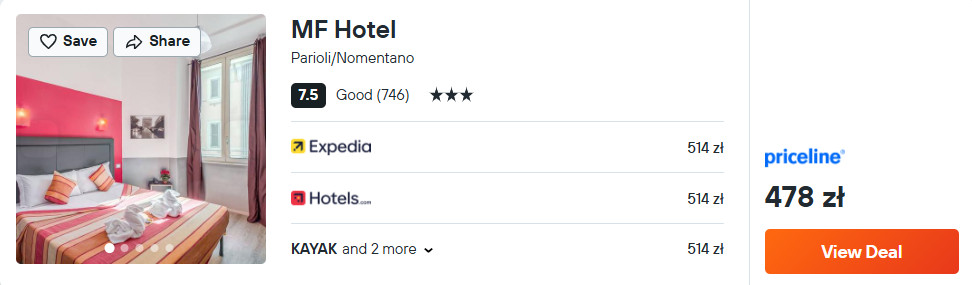 W Rzymie proponuję ci noclegi w 3* hotelu MF, który od stacji metra Castro Pretorio oddalony jest 5 minut spokojnego spaceru. W każdym pokoju jest łazienka z prysznicem.