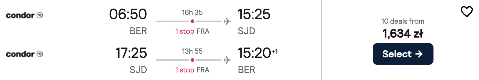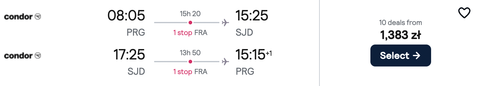 W podróż na zachodnie wybrzeże Meksyku wybierzesz się w terminie 14-21 listopada. Do San Jose del Cabo polecisz z Pragi lub Berlina linią Condor. Po drodze zaplanowane są krótkie przesiadki we Frankfurcie.