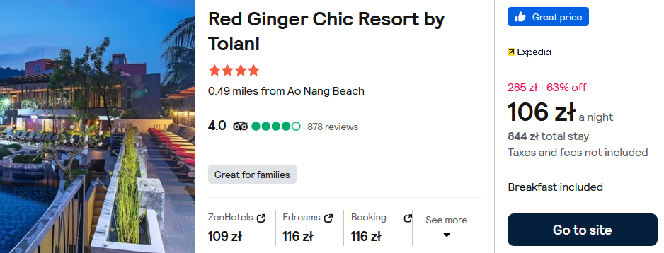 W Tajlandii zatrzymaj się w 4* Red Ginger Chic Resort by Tolani. Hotel oferuje swoim gościom dostęp do baru, basenu i centrum fitness. W cenę noclegów wliczono śniadania.
