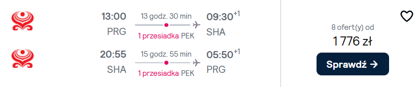 Do Szanghaju polecisz z praskiego lotniska im. Václava Havla liniami Hainan Airlines z przesiadkami w Pekinie. W cenie zabrać ze sobą możesz bagaż podręczny oraz rejestrowany (nadawany do luku).