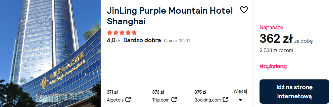 Luksusowy 5* hotel JinLing Purple Mountain w sercu Szanghaju – komfort, elegancja i widok na miasto. Idealny dla biznesu i wypoczynku. Zarezerwuj wyjątkowy pobyt już dziś!