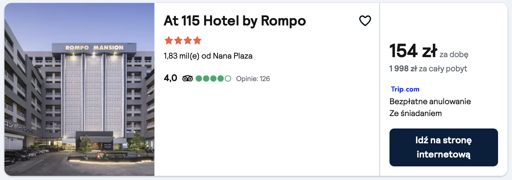 W Bangkoku postaw na 4* At 115 Hotel by Rompo. W cenę zakwaterowania wliczone są śniadania.
