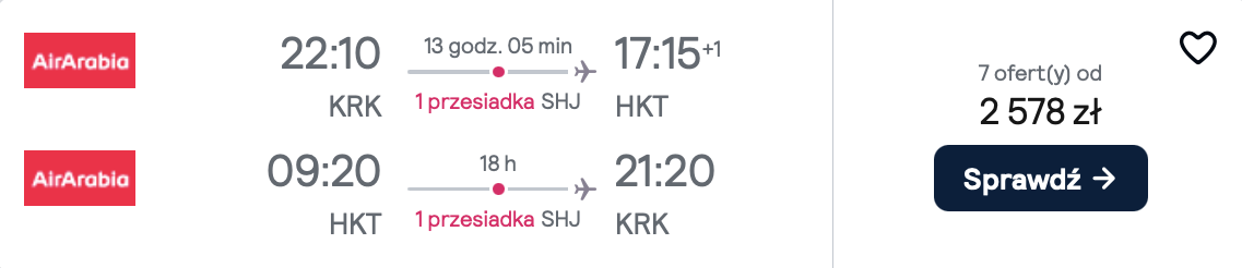 Do Tajlandii (Phuket i Bangkok) wybrać możesz się z Krakowa i Warszawy w terminach w marcu. W obie strony podróżować będziesz linią Air Arabia z przesiadką w Zjednoczonych Emiratach Arabskich. W cenę biletu wliczony jest bagaż podręczny oraz przedmiot osobisty.