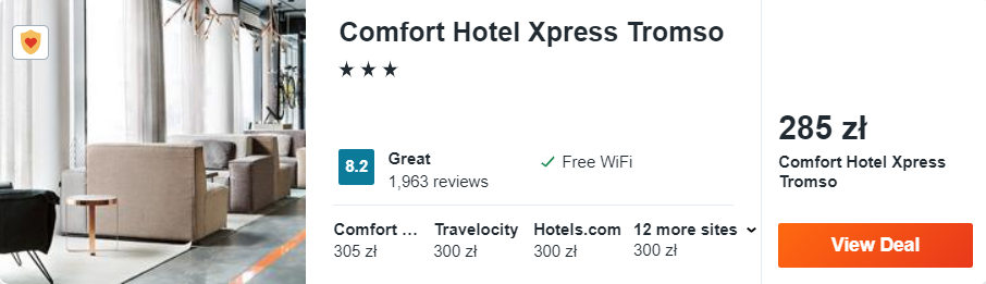 W Tromso polecam zakwaterowanie w 3* Comfort Hotel Xpress, który położony jest w samym centrum miasta, zaledwie minutę spacerem od ulicy handlowej Storgata. Wszystkie pokoje w obiekcie są nowocześnie urządzone, w każdym z nich znajdziecie prywatną łazienkę oraz skorzystacie z bezpłatnego internetu.