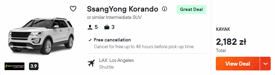 Co powiecie na wycieczkę z Los Angeles do Las Vegas? A może by tak zobaczyć Wielki Kanion? W takim razie wypożyczycie samochód zaraz po przylocie do Miasta Aniołów. Z własnym autem łatwo i wygodnie dojedziecie do miejsc, które zapragniecie odwiedzić.