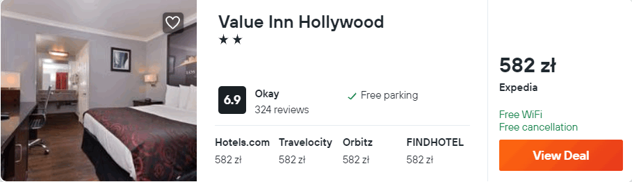 W Los Angeles proponuję wam noclegi w obiekcie Value Inn Hollywood, który znajduje się nieopodal Barnsdall Art Park. Wszystkie pokoje są klimatyzowane i wyposażone w telewizor LCD, lodówkę i zestaw do parzenia kawy lub herbaty. Na miejscu zapewniony będziecie mieli dostęp do sieci WiFi oraz bezpłatnego parkignu.