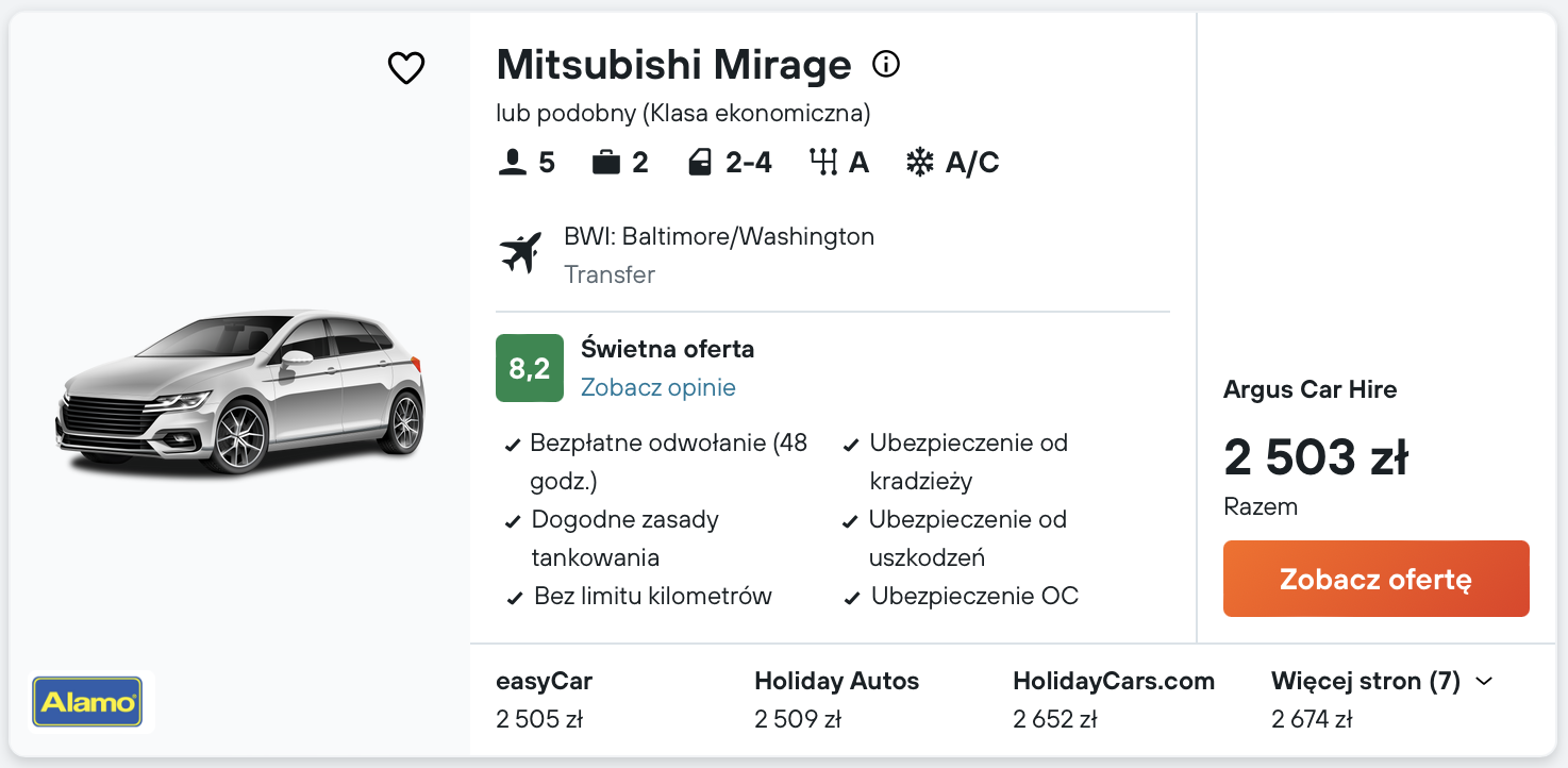 Warszawa – Waszyngton (Baltimore) Warszawa >>