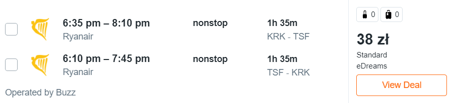 Kraków – Wenecja Treviso – Kraków »