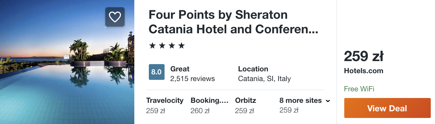 Na Sycylii polecam zatrzymać się w 4* Four Points by Sheraton Catania Hotel, który oferuje panoramiczny widok na Etnę i Morze Jońskie.