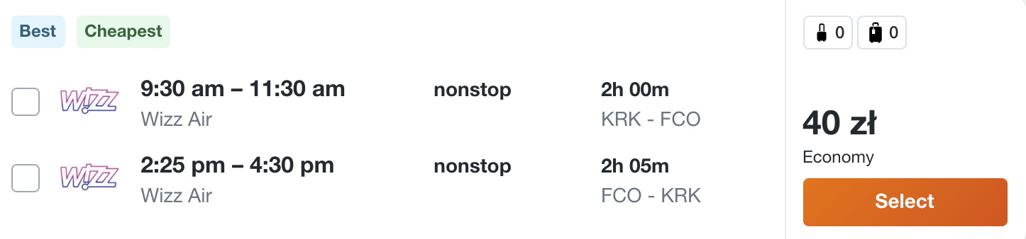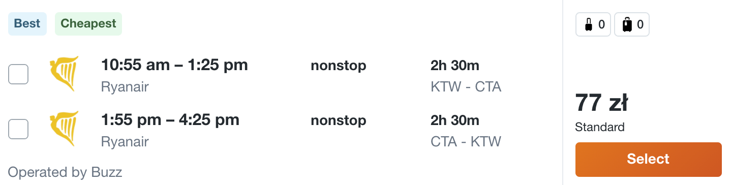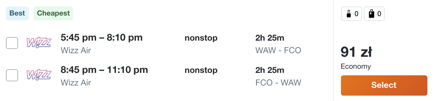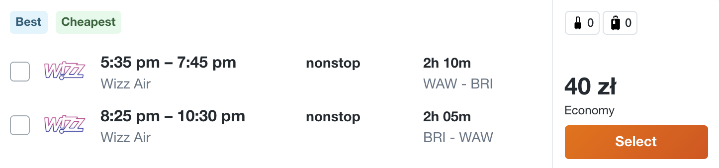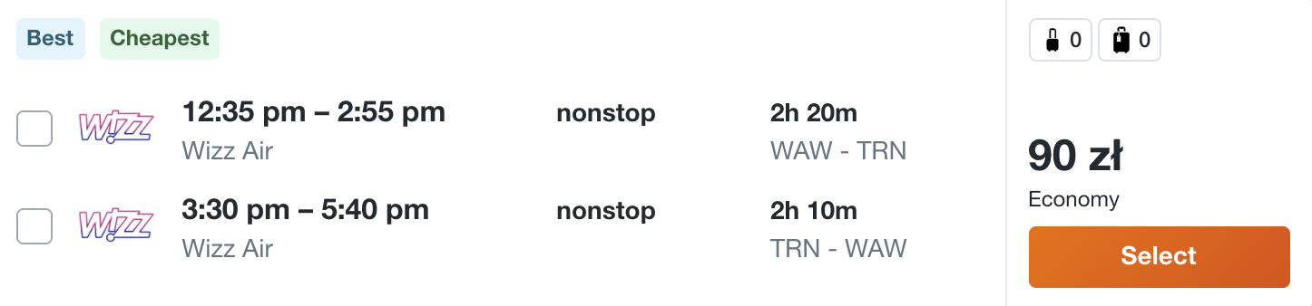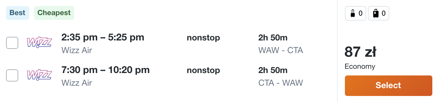 W podróż polecicie na pokładzie samolotów linii lotniczej Wizz Air i Ryanair z Warszawy, Katowic i Krakowa. Na wycieczkę możecie udać się do Bari, Bergamo, Katanii, Turynu, Rzymu, Werony, Mediolanu i Alghero.