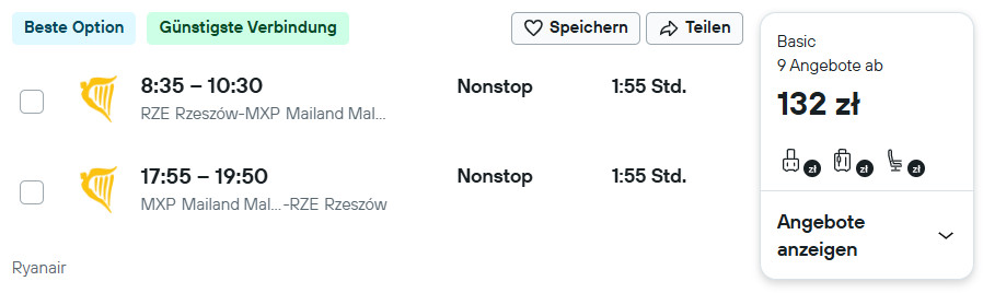 Rzeszów – Mediolan – Rzeszów »