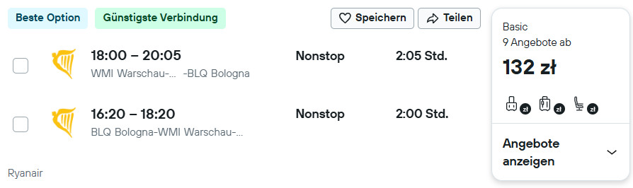 Warszawa Modlin – Bolonia – Warszawa Modlin »