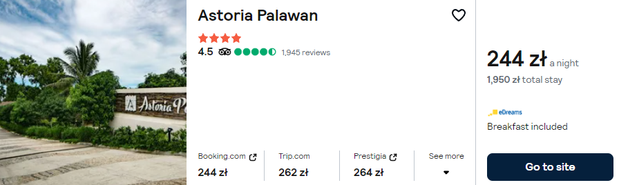 Na Palawanie wybierz zlokalizowany przy plaży 4* hotel Astoria. Znajdziesz w nim między innymi siłownię, basen oraz restaurację.