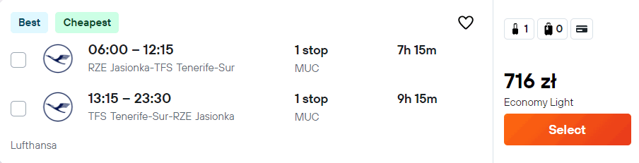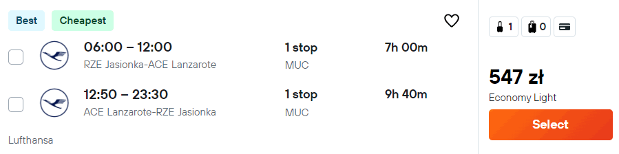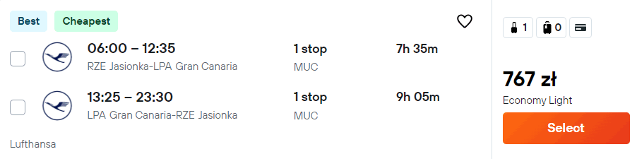Zbiór lotów Lufthansą na Wyspy Kanaryjskie z Rzeszowa od 547 PLN