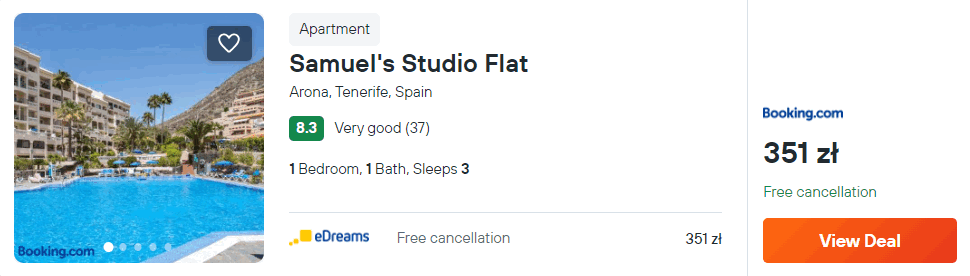 Na Teneryfie proponuję ci noclegi w kompleksie Samuel’s Studio Flat, który znajduje się w miejscowości Los Cristianos, w odległości nieco ponad 1 km od plaż: Los Tarajales oraz Los Cristianos.