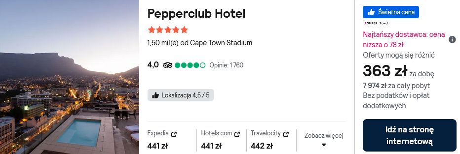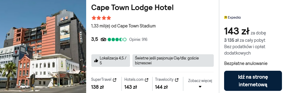W Kapsztadzie zatrzymaj się w położonym w centrum miasta 4* hotelu Cape Town Lodge. Obiekt oferuje swoim gościom dostęp do restauracji, baru, siłowni i basenu.