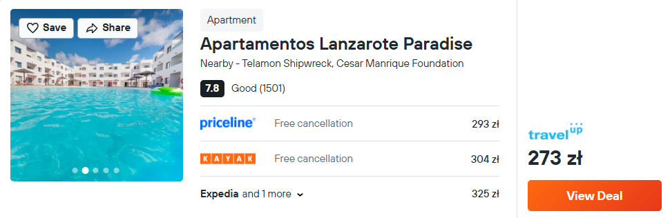 Na Lanzarote proponuję ci noclegi w kompleksie Apartamentos Lanzarote Paradise, który znajduje się w kurorcie Costa Teguise. Na terenie obiektu jest basen dla dzieci, dorosłych oraz bezpłatny parking.