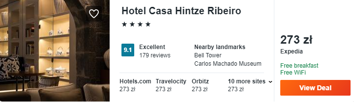 Na Azorach rekomenduję wam noclegi w 4* hotelu Casa Hintze Ribeiro, który położony jest w pobliżu najważniejszych atrakcji Ponta Delgada. W obiekcie znajduje się basen, strefa spa i siłownia. Otrzymacie również darmowe śniadania. Dotychczasowi goście pozytywnie oceniają pobyt w ośrodku.