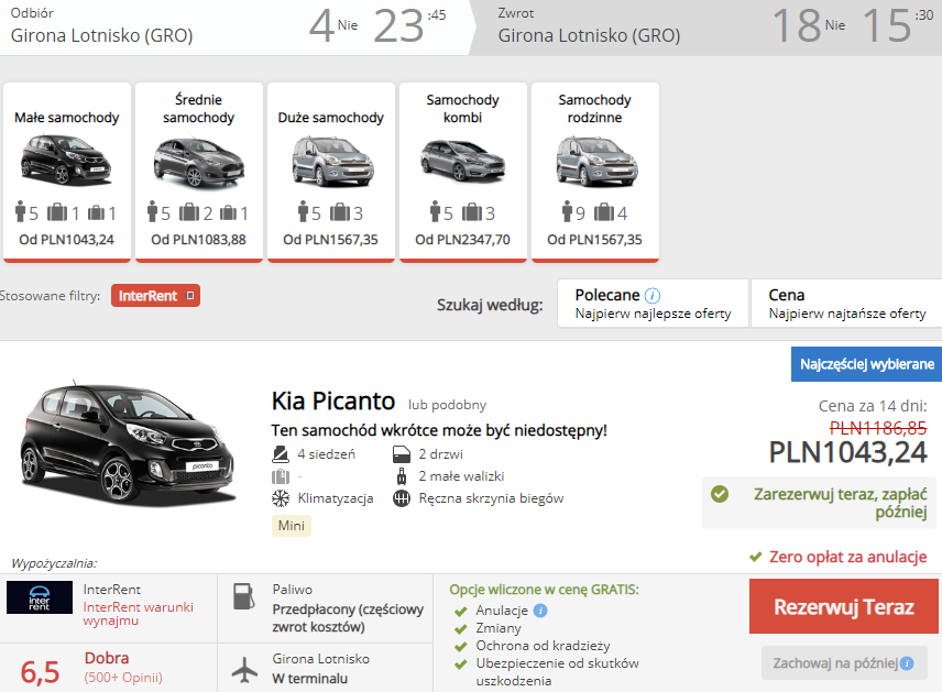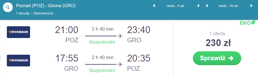 Przeloty realizowane są na pokładzie linii lotniczej Ryanair. Jeżeli nie interesuje was wynajęcie samochodu, a biorąc pod uwagę późną godzinę przylot do Girony, to proponuję wam tą pierwszą noc spędzić w hotelu przy lotnisku.