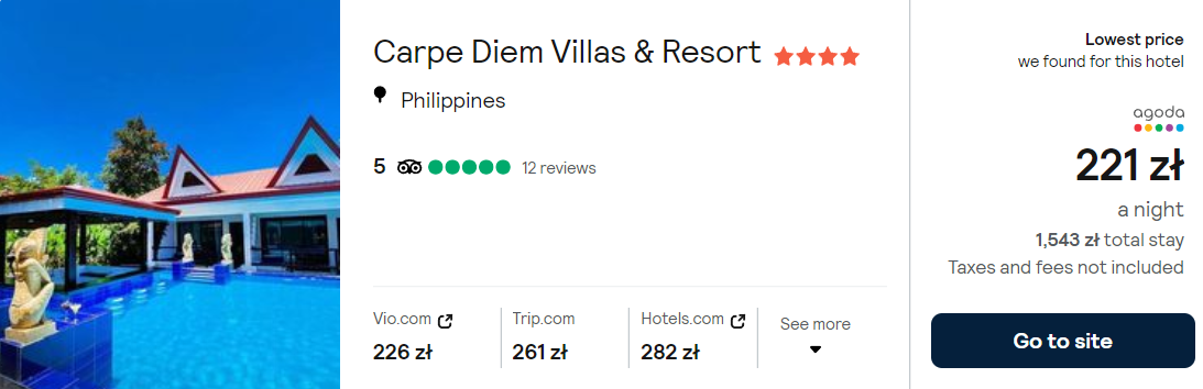Na Palawanie polecam noclegi w 4* hotelu Carpe Diem Villas & Resort. Na miejscu znajdziesz basen i taras słoneczny.