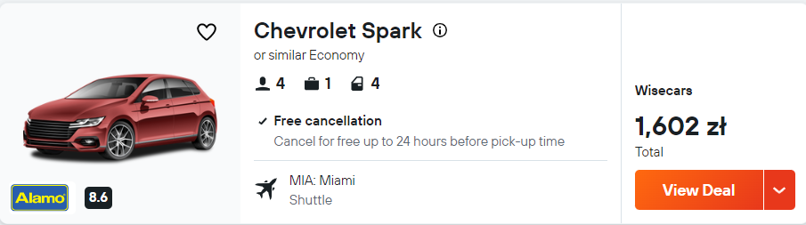 Na przylądek Key West oraz do Centrum Kosmicznego Johna F. Kennedy’ego oraz w pozostałe rejony Słonecznego Stanu, łatwo i wygodnie dojedziesz autem. Dlatego zachęcam cię do wypożyczenia samochodu zaraz po przylocie do Miami.