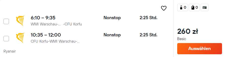 Na Korfu wybierzesz się z portu lotniczego Kraków-Balice, warszawskiego portu lotniczego w Modlinie oraz z wrocławskiego lotniska im. Mikołaja Kopernika. Na każdej trasie polecisz bezpośrednio linią Ryanair z bagażem podręcznym.