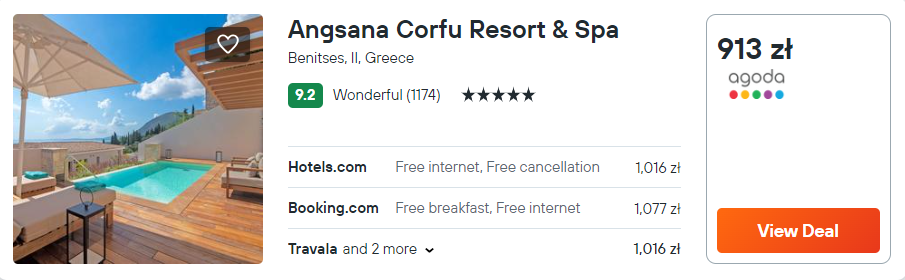 Natomiast jeżeli jesteś w stanie wydać nieco więcej na zakwaterowanie, to wybierz ofertę pobytu w 5* Angsana Corfu Resort & Spa. Od plaży Benitses jest on oddalony o niespełna 2 km.
