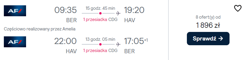 Do Hawany polecisz z portu lotniczego Berlin Brandenburg w okresie maj-czerwiec. W obie strony podróżować będziesz linią Air France z wygodną przesiadką w Paryżu. Na wycieczkę udasz się z bagażem podręcznym oraz przedmiotem osobistym (mały plecak lub damska torebka).