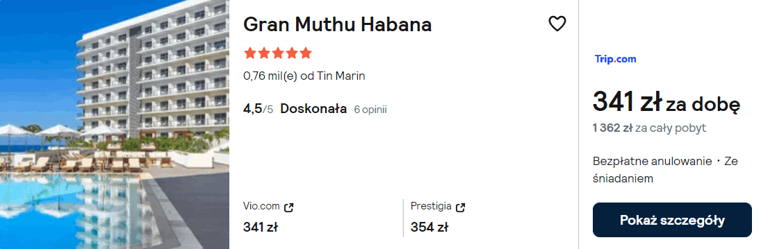 W Hawanie proponuję ci noclegi (ze śniadaniami) w 5* hotelu Gran Muthu z odkrytym basenem.