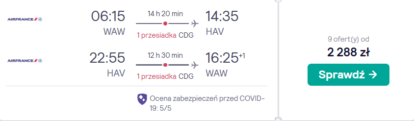 W egzotyczną podróż na Kubę wyruszycie jeszcze tej jesieni, na przykład w terminie 16 – 30 października. Czekają was loty z lotniska w Warszawie, realizowane na pokładzie samolotów Air France. Po drodze spodziewajcie się przesiadek na paryskim lotnisku im. Charlesa de Gaulle’a.