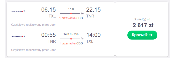 Przeloty realizowane są na pokładzie linii lotniczej Air France.