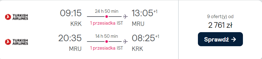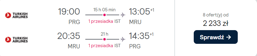 Loty (z bagażem) Turkish Airlines na Mauritius od 2233 PLN. Podróże z Krakowa, Warszawy, Pragi i Wilna