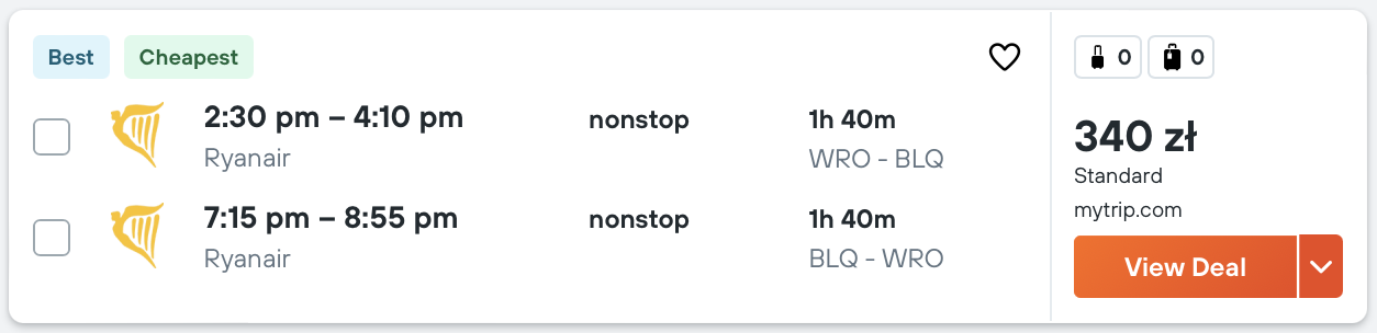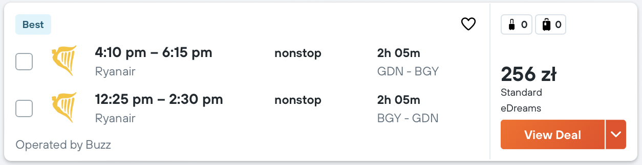 Na wycieczkę polecicie na pokładzie samolotów linii lotniczej Ryanair z Warszawy (Modlin), Gdańska, Poznania i Wrocławia. Możecie wybrać się do Sztokholmu, Wiednia, Rygi, Wenecji, Bergamo, Budapesztu, Gdańska i Bolonii.