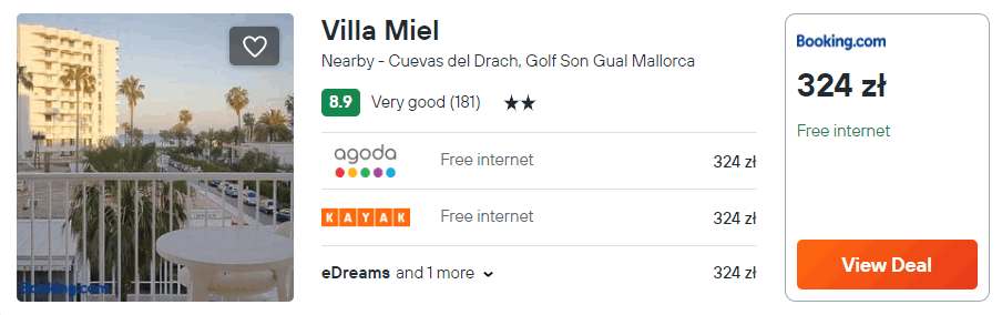 Na Majorce proponuję ci noclegi w hotelu Villa Miel, który znajduje się w odległości 200 metrów od plaży, w miejscowości Cala Millor. Na terenie całego obiektu będziesz miał zapewniony dostęp do sieci WiFi.