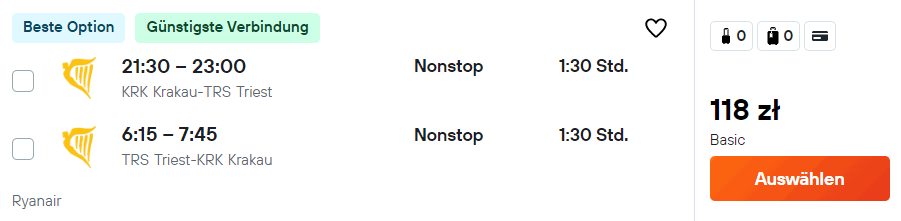 Na każdej trasie polecisz bezpośrednio linią Ryanair z wliczonym bagażem podręcznym.
