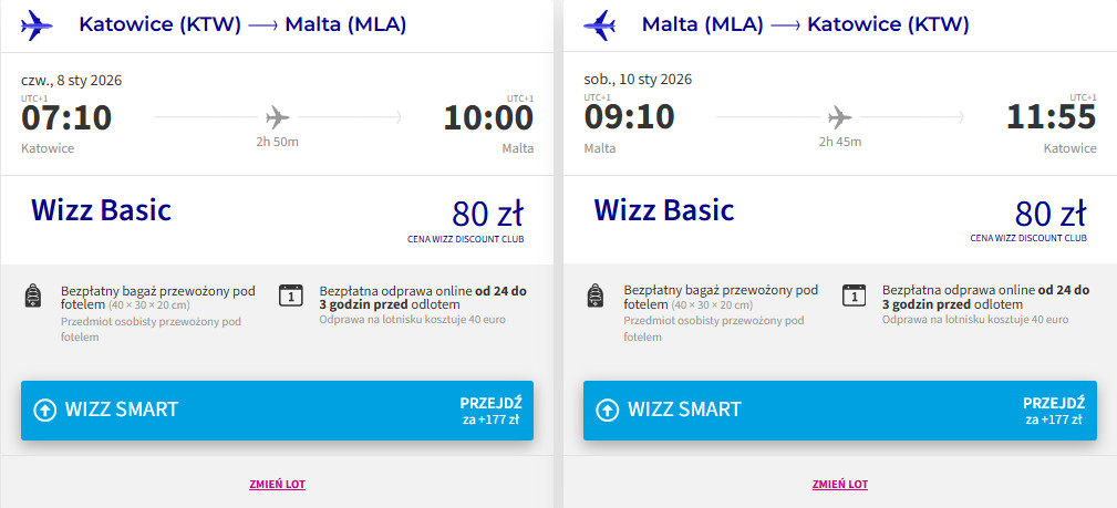 Podróż od 152 PLN (w obie strony)