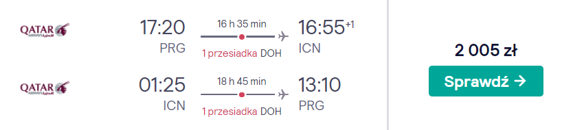 Wakacje 2021: Loty Qatar Airways do Seulu z Pragi za 2005 PLN