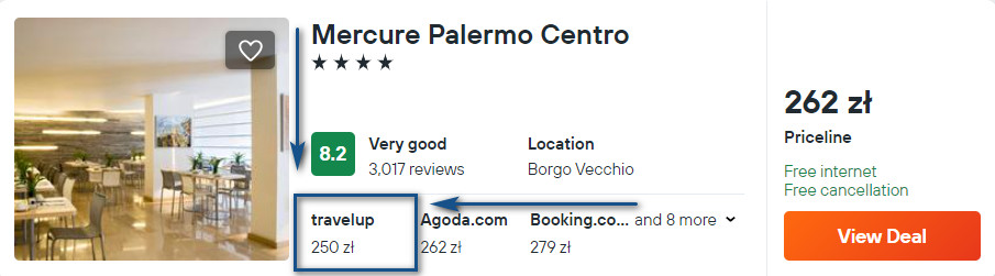 Na Sycylii rekomenduję ci zakwaterowanie w 4* hotelu Mercure Palermo Centro. Każdy pokój wyposażony jest w klimatyzację, telewizor LCD, zestaw do parzenia kawy lub herbaty oraz minibar. W łazience jest prysznic, suszarka do włosów oraz podstawowe przybory toaletowe. We wszystkich pomieszczeniach będziesz mieć zapewniony dostęp do sieci WiFi.