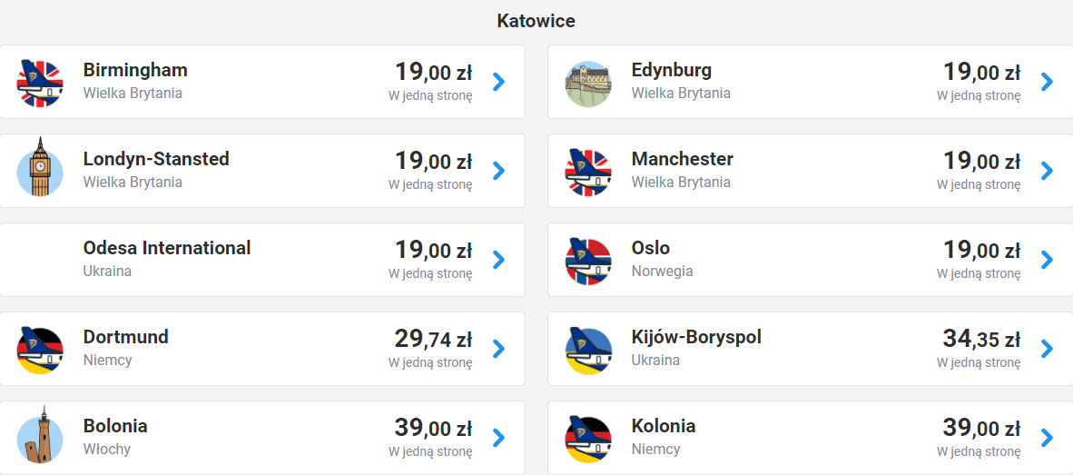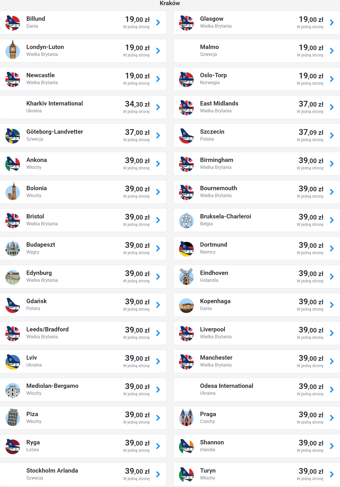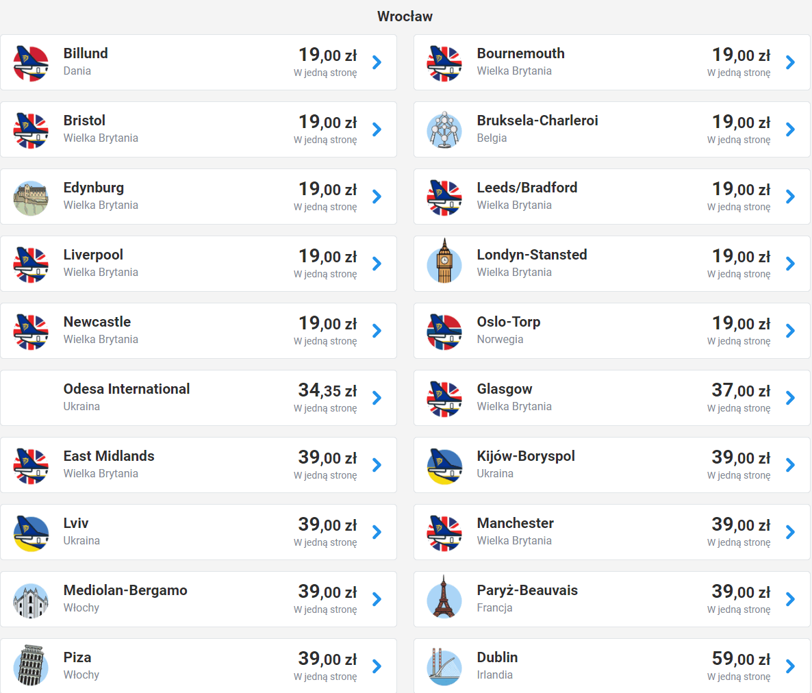 Wylot z: Gdańska, Katowic, Krakowa, warszawskiego lotniska w Modlinie oraz Wrocławia.