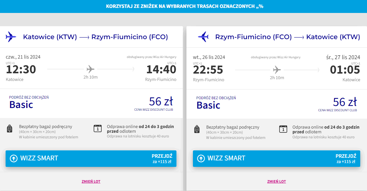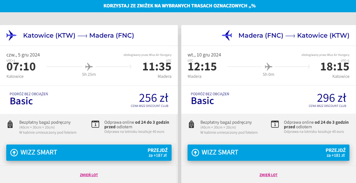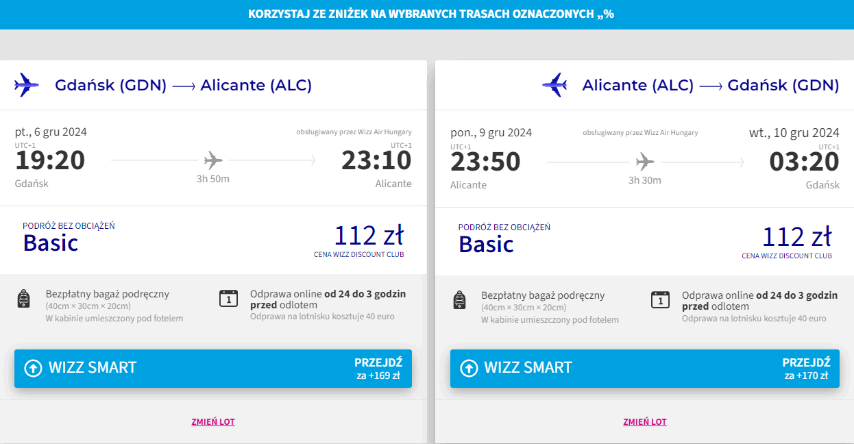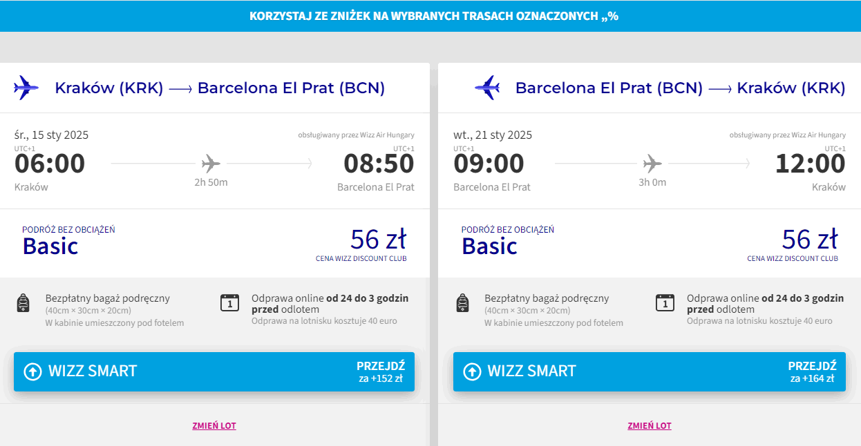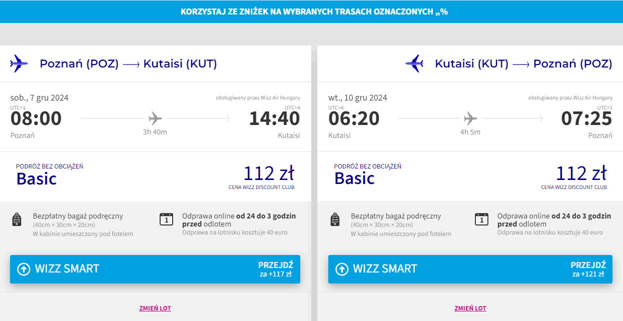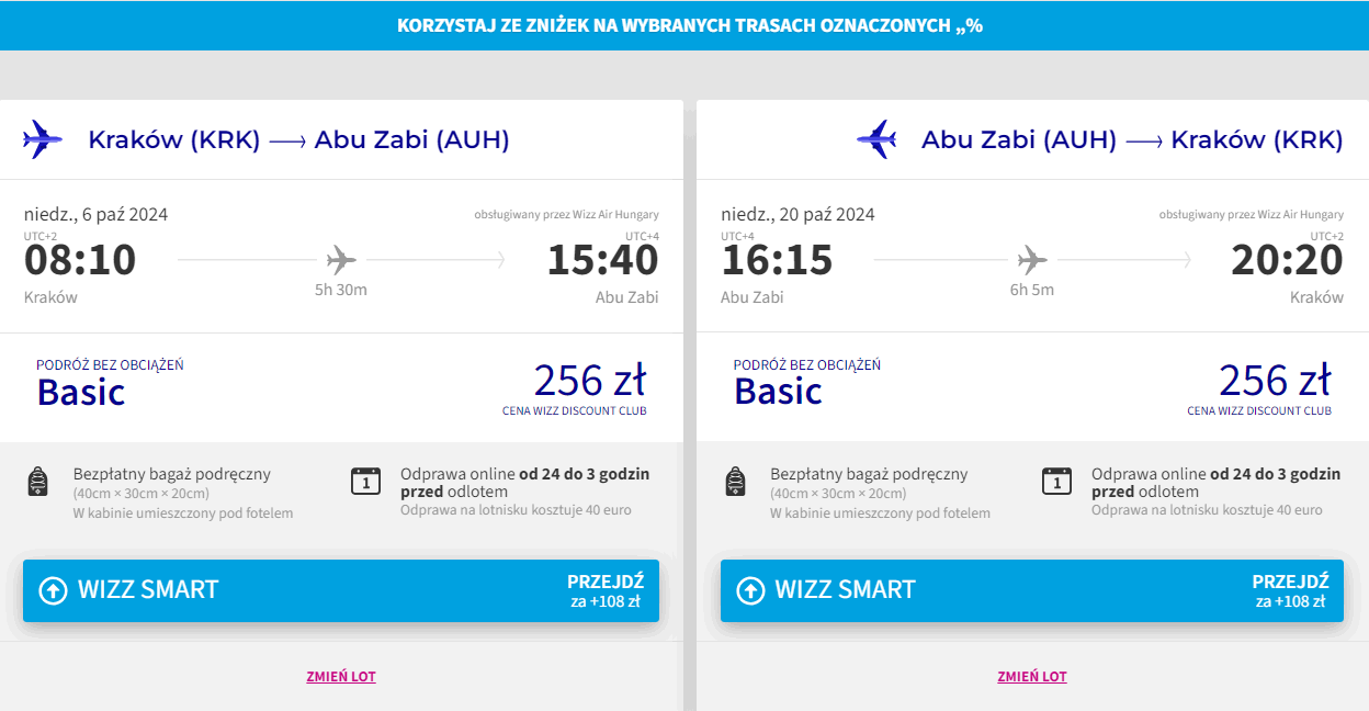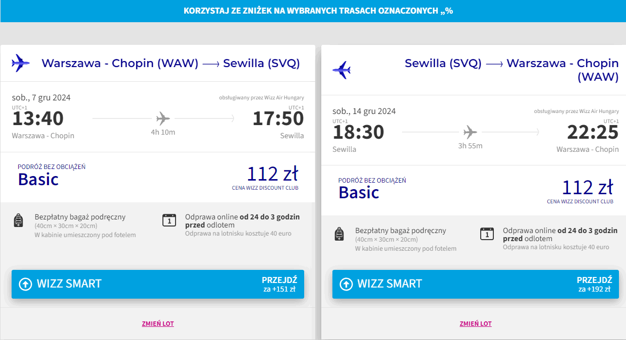 Na każdej trasie polecisz bezpośrednio linią Wizz Air z wliczonym bagażem podręcznym. Bilety w najniższej cenie dostępne są dla członków Wizz Discount Club.