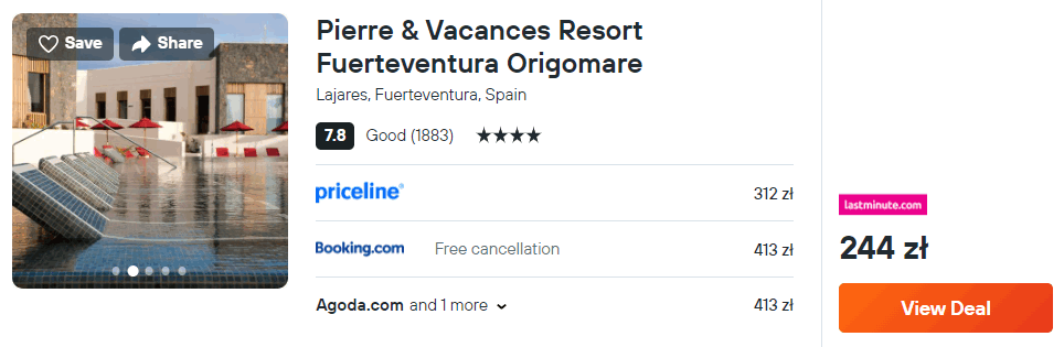 Na Fuerteventurze zatrzymaj się w 4* hotelu Pierre & Vacances Resort Fuerteventura Origomare, który znajduje się w miejscowości Lajares. Na terenie obiektu mieści się park wodny Craterpark.