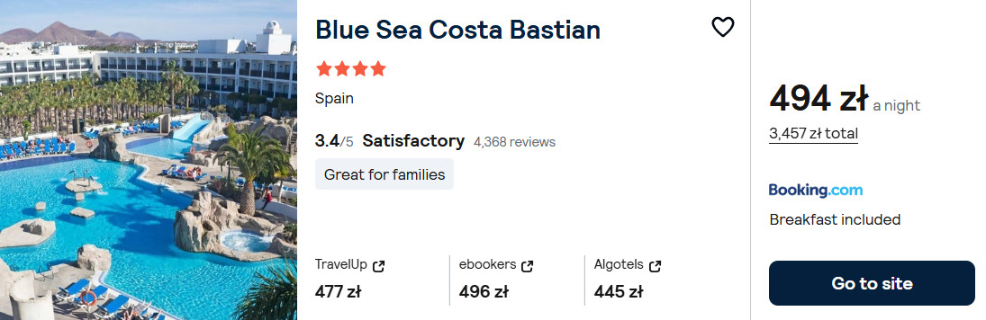 Postaw na pobyt w 4* hotelu Blue Sea Costa Bastian, który znajduje się 10 minut spacerem od plaży w Costa Teguise. Na terenie obiektu są 3 baseny, a w cenę wliczone są codzienne śniadania.