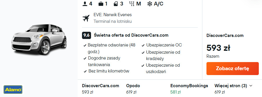 🚘 Wynajem auta: 593 PLN