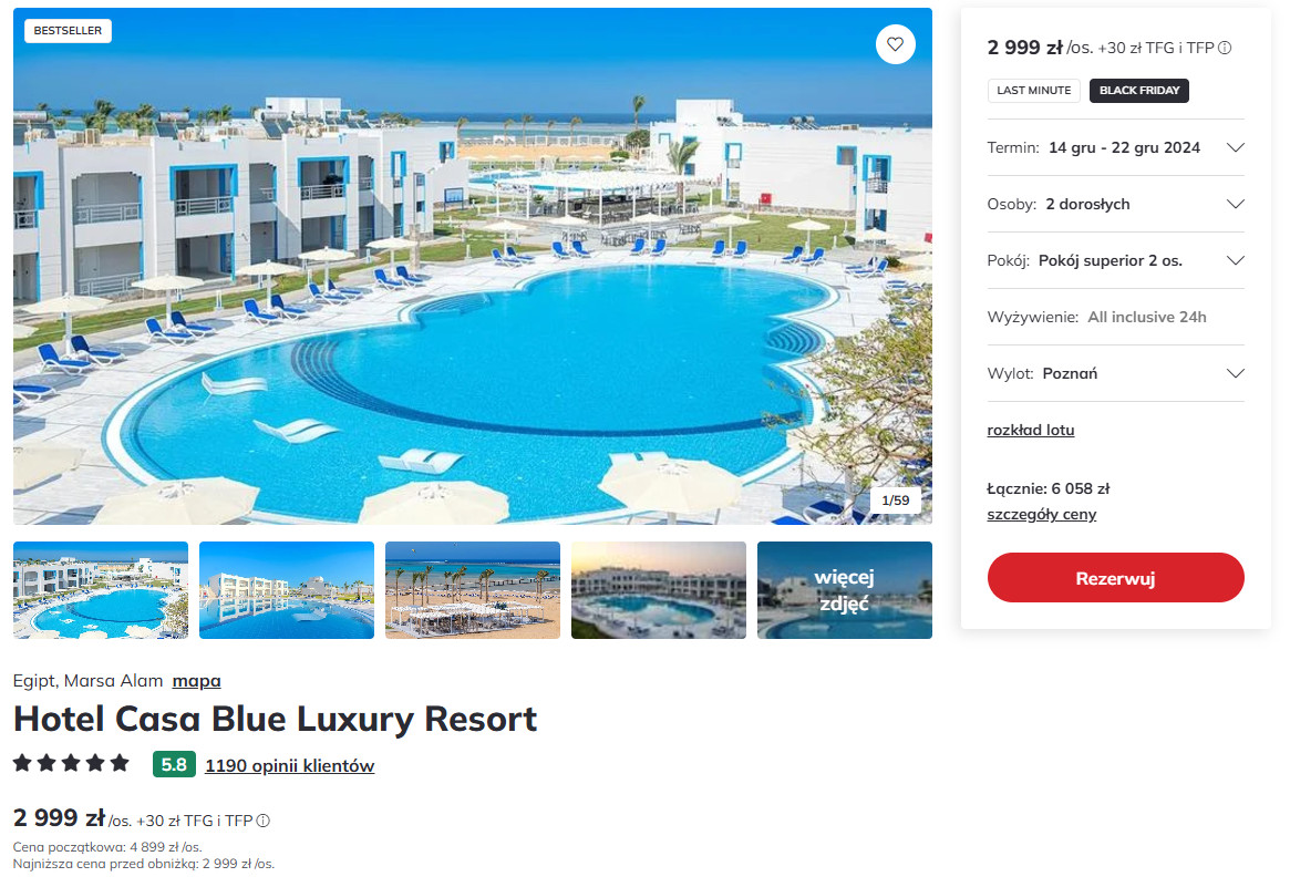 W cenie zapewnione są loty (z bagażem nadawanym do luku), transfery na trasie lotnisko – hotel – lotnisko, opieka rezydenta oraz 24-godzinne all inclusive