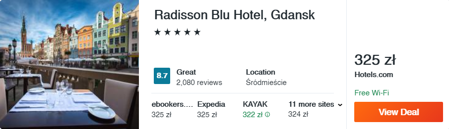 Dowiedzcie się więcej o tym hoteluTrójmiasto wzywa! Wybierzcie się do Gdańska, a dokładniej do 5* hotelu Radisson Blu, położonego w samym sercu zabytkowej części miasta. Dla gości udostępniono m.in. siłownię, restaurację oraz strefę saun. Wszystkie pokoje posiadają dostęp do Wi-Fi oraz telewizor i minibar.