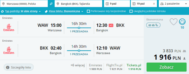 - Loty z Warszawy do Bangkoku (9 – 19 października) za 3833 PLN/2 osoby (1916 PLN/osoba)