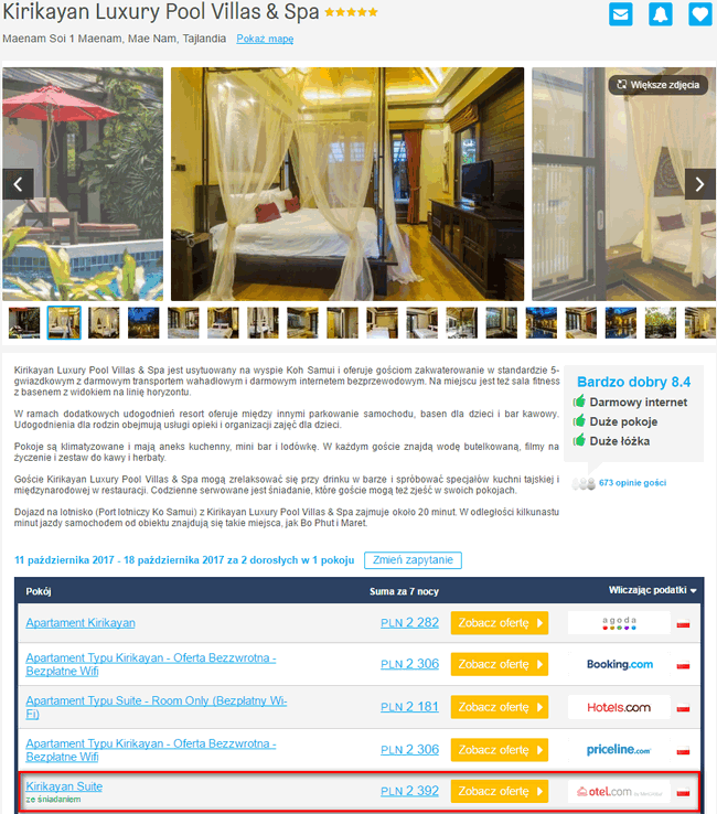 Na Ko Samui proponuję Wam pobyt w bardzo dobrze ocenianym hotelu ze śniadaniami za 2392 PLN za dwie osoby. Kirikayan Luxury Pool Villas & Spa jest usytuowany w północnej części wyspy i oferuje gościom zakwaterowanie w standardzie 5-gwiazdkowym z darmowym transportem wahadłowym i darmowym internetem bezprzewodowym. Na miejscu jest też sala fitness z basenem z widokiem na linię horyzontu.