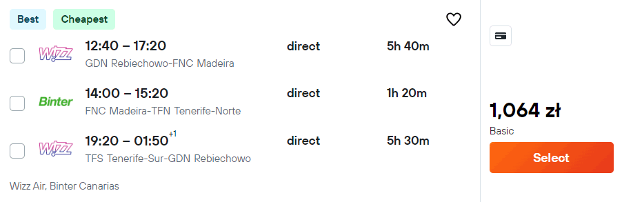Na Maderę i z Teneryfy polecisz bezpośrednio linią Wizz Air. Ważne! Do zakupu biletów nie potrzebujesz żadnych klubów zniżkowych. Są one dostępne dla wszystkich chętnych! Natomiast pomiędzy wyspami (Madera-Teneryfa) podróżować będziesz bezpośrednią linią Binter Canarias.