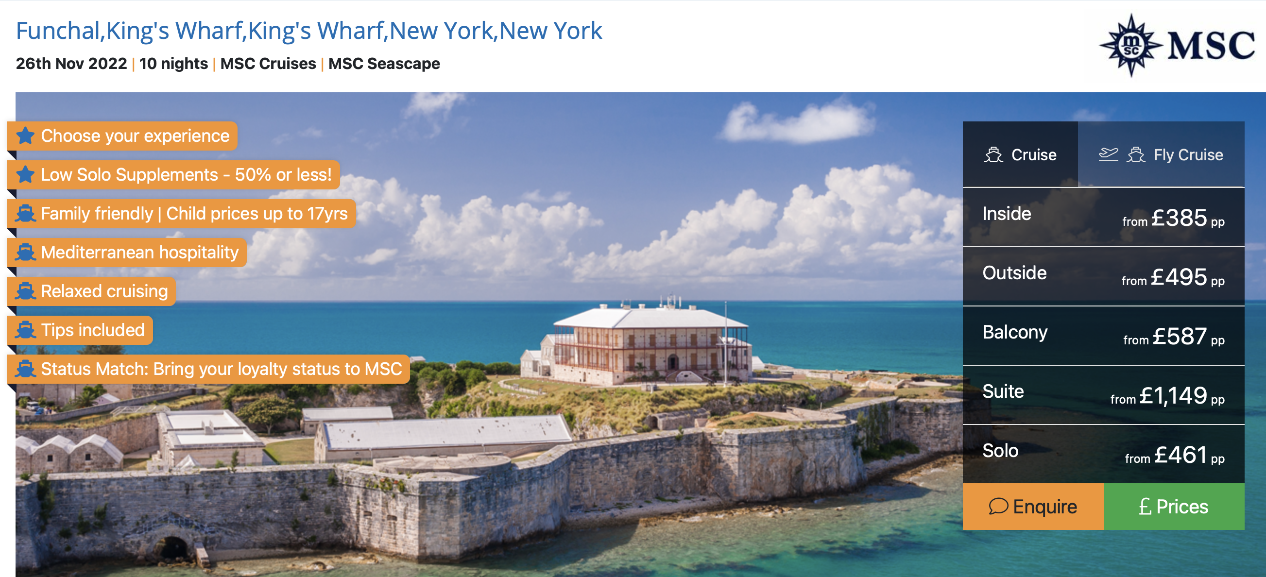 Podróżować będziecie liniami lotniczymi Wizz Air, Norse Airways i Ryanair oraz statkiem MSC Seascape.
